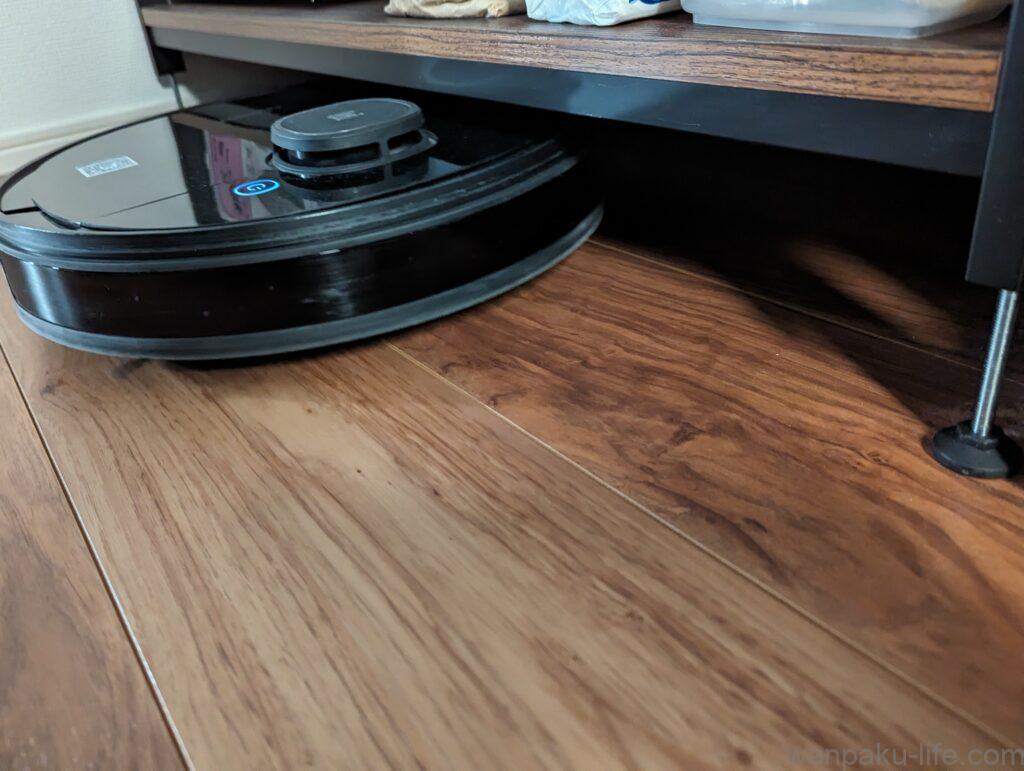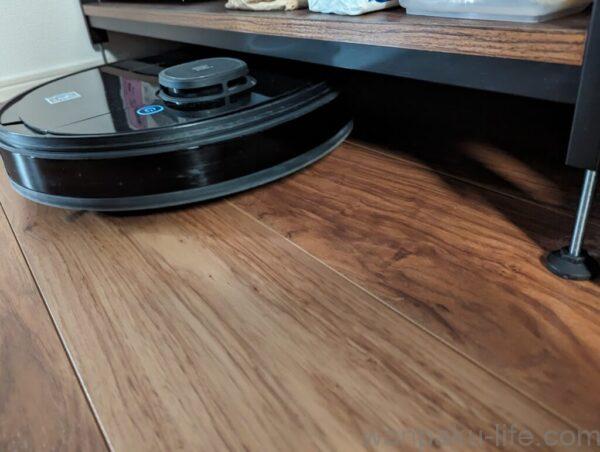 今回はこの棚の下もロボット掃除機で掃除してほしい!