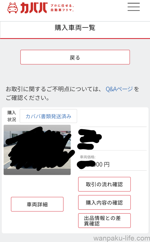 ↓購入すると、マイページの購入車両一覧に表示されて、