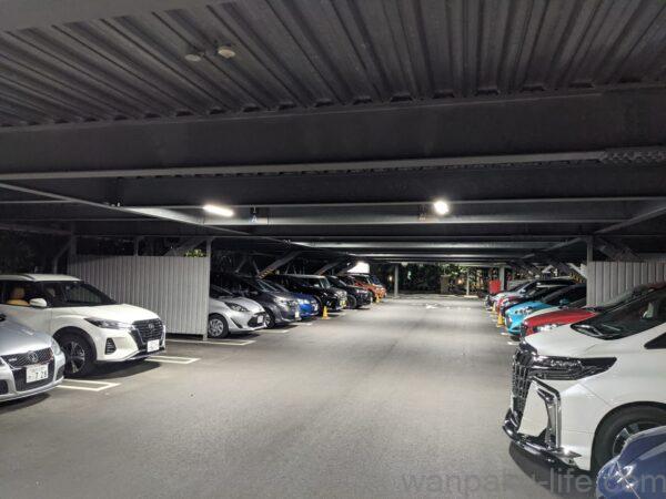 駐車場は自走式、少し車と車の間隔が狭かったです。