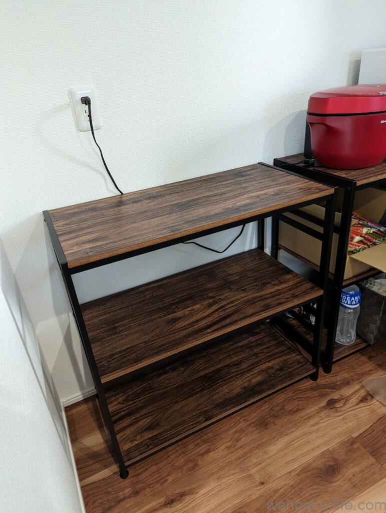 このラックの同じシリーズに4段のがあるんだけど、それを買ってしまうと一番上の段に炊飯器とか置くと、高くなりすぎるので要注意!