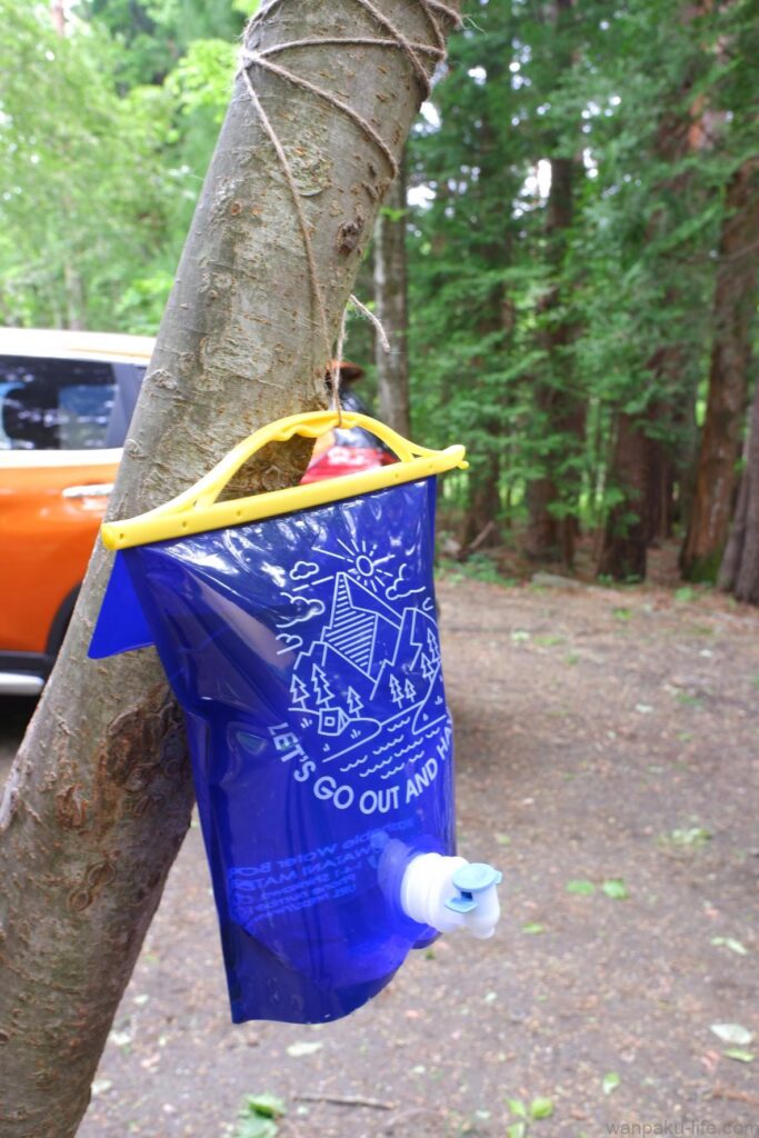 水場(水道)が近くにあれば良いのですが、ない場合に役立つのがこういった水を溜めておけるタンク。