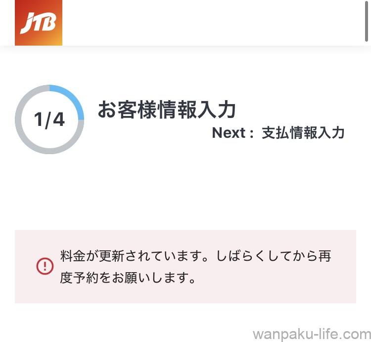料金が更新されています。しばらくしてから再度予約をお願いします。