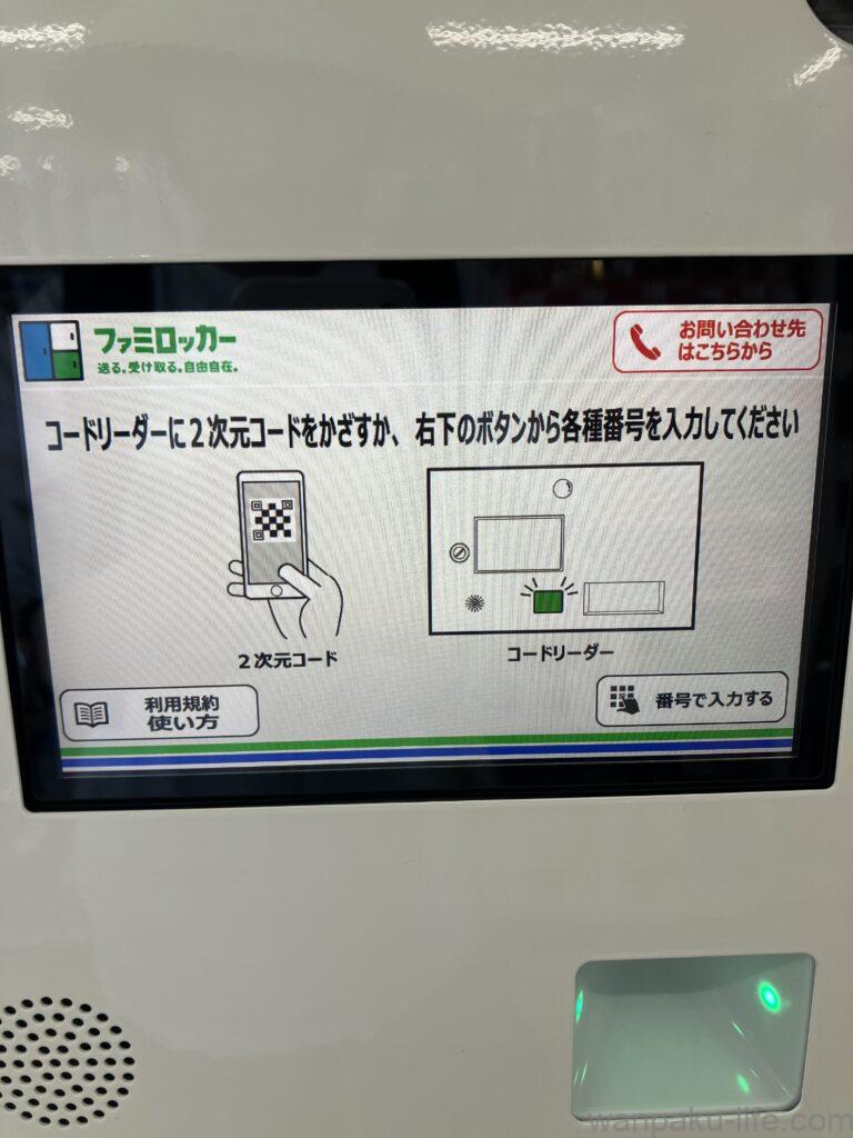 ファミロッカーは「QRコードをかざす」か、「番号で入力する」の2択のため「番号で入力する」をやってみよう!
