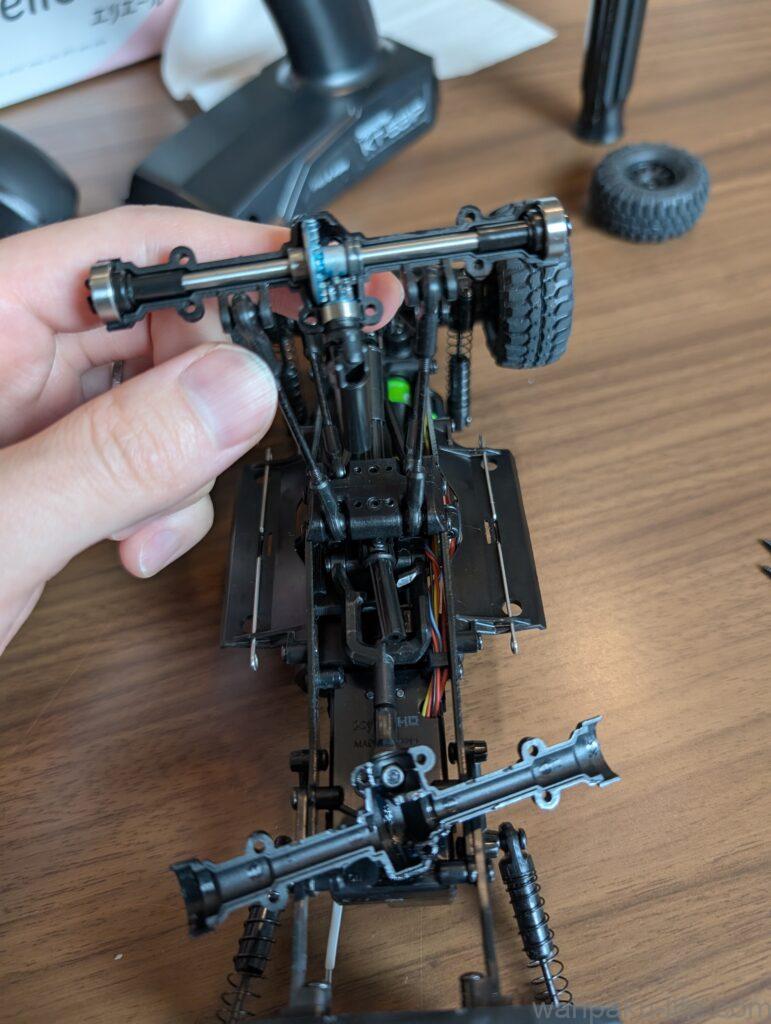 どこが壊れたのか、タイヤ、シャフト部分を分解して確認。