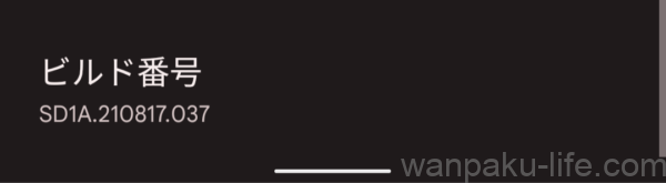 アップデート後のビルド番号はSD1A.210817.037とのこと(今後さらなるアップデートが入っていれば異なるバージョンになると思います。)