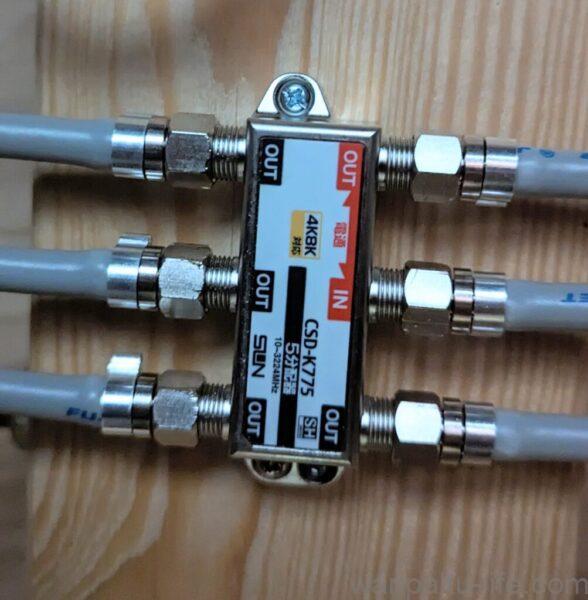 今回は既存の分配機の近くに設置するつもりだったので、短めのケーブルを2本追加購入。