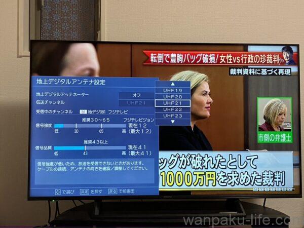 一番低かったフジテレビ、この日はぎりぎり見れてる状況で信号強度12